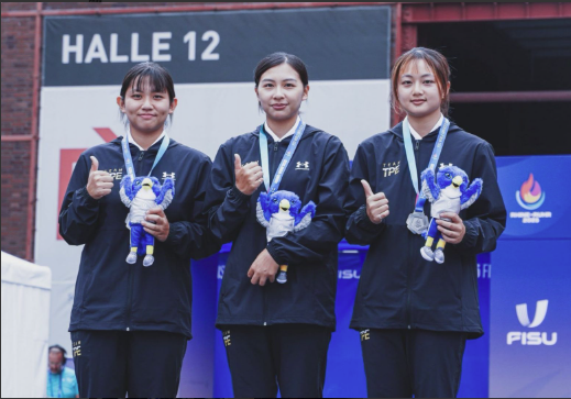 風佑築同學(本系大一新生)、李采璇與郭紫穎組成之台灣女子反曲弓代表隊,接連擊敗義大利、印度與中國等勁旅,成功晉級金牌戰,此亦為繼2017年臺北世大運後,我國女子反曲弓團體再次挺進決賽。金牌戰面對來勢洶洶之日本隊,中華隊首局以56比55搶先拿下2分;然而,受到天候影響,加之日本選手表現出色,終場以2比6之比數收下銀牌。