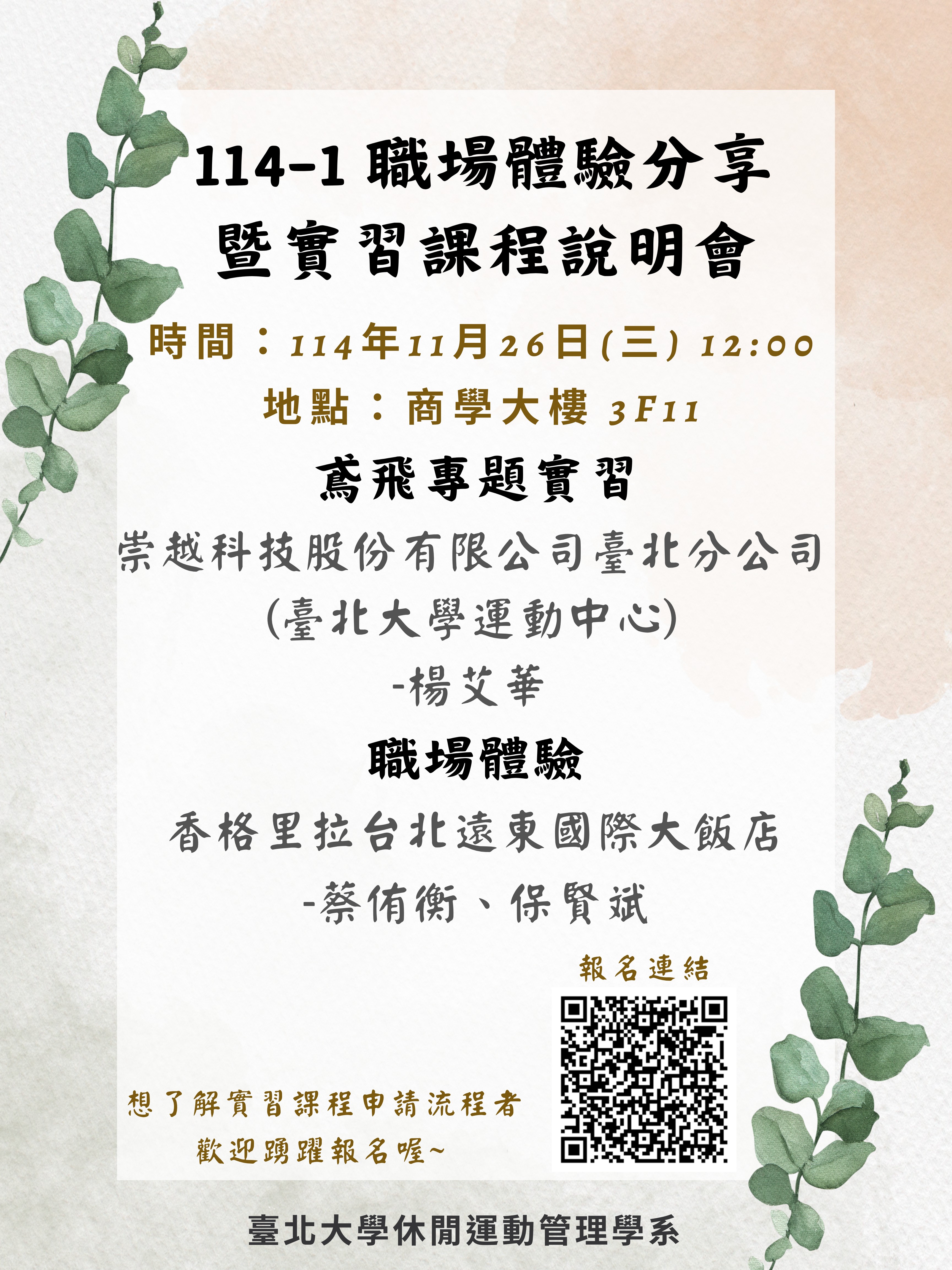 【114-1 職場體驗/鳶飛專題實習分享暨課程說明會】
